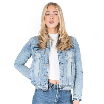 [Material]: The NOROZE Sherpa Lined Denim Jacket for Ladies is designed with soft sherpa lining. Denim Jacket is made from 100% cotton, it offers unparalleled comfort and breathability. [Design]: Featuring a smart fit design and a band collar style, this jacket effortlessly combines fashion with functionality. With its long sleeves and button fastening, it provides a secure and snug fit that can be easily adjusted to your liking. [Versatility]: Its everlasting design and versatile style make it suitable for various occasions, whether you're going for a casual day out or adding a trendy touch to your evening outfit. [Features]: This Sherpa lined jacket features multiple pockets, providing ample storage space for your essentials. Whether you need to carry your phone, keys, or wallet, this jacket has got you covered without compromising on style. [Color and Sizes]: The NOROZE Sherpa Lined Denim Jacket for Ladies is available in Denim Blue and Light Blue color. Available sizes are 8 10, 12, 14, 16, 18.