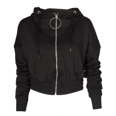 NOROZE Women's Zip Crop Hoodie Ladies Plain Sweatshirt Cropped Top Pullover Sweater (S, Black)