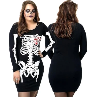 [Features]: The feature of a Halloween skeleton dress is the detailed graphic print of a skeletal structure. This design usually includes the image of bones, such as the skull, ribs, spine, heart and limb bones. [Material]: The Tunic Tops for Women Uk is made of 95% polyester and 5% elastane, the fabric is high quality, comfortable and breathable. Slimming and stretchy at the same time, it won't feel constricting. {Easy to Wear:} Tunic tops are easy to put on and take off, and the loose fit allows for comfort and freedom of movement. [Versatile]: In addition to Halloween parties, Halloween skeleton dresses can also be worn as casual Halloween attire or as comfortable and festive loungewear. [Great for Halloween Parties]: Halloween skeleton dresses are a popular choice for Halloween costume parties and gatherings, where they allow you to showcase a unique and eye-catching costume without the need for a full outfit.