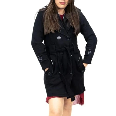 NOROZE Womens Long Sleeve Belted Button Coat Hood Jackets Size 8 10 12 14 (M(10), Black)