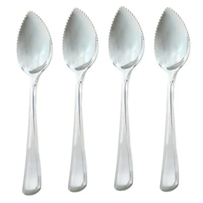 Measures: 6.25" x 1" x .75" / 16cm x 2.5cm x 2cm Set of 4 Dig into that juicy grapefruit with the proper utensil! Polished stainless steel spoon with serrated edges easily loosen grapefruit sections. Also suitable for use with oranges and kiwi fruit. 1281 NP1281 NP1281 MPN 1281