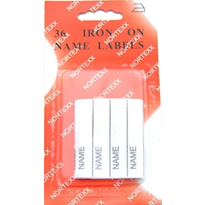36 Iron on Name labels Completely dry cleanable and washable up to 40C Quick and simple to use simply iron on Iron on or sew on Iron On or Sew On Easy to use Stick within 10 seconds Washable Cotton