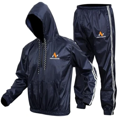 North Edge Sauna Sweat suit is made with premium quality 0.18 mm thick PVC coated Nylon fabricExcellent for your gym training and it works so quick to get the result you want. - 💪 𝐃𝐮𝐫𝐚𝐛𝐥𝐞 𝐂𝐨𝐧𝐬𝐭𝐫𝐮𝐜𝐭𝐢𝐨𝐧: Crafted with North Edge's signature anti-rip fabric, this Sauna Suit boasts exceptional durability, ensuring it withstands rigorous workouts without tearing easily. Its robust tensile strength makes it a top choice for those serious about weight loss and fitness, earning its spot as one of the premier gym body Sauna Sweat suit. Sauna Sweat Suit Even during the most physical workouts, personal effects are kept safe thanks to the Sauna Suit zipped waterproof kangaroo and trouser pockets Beneficial for gym training and weight reduction process. Sweet Suit 2 piece unisex outfit complete with top and bottom (elastic waist and ankles). North Edge Sauna Suit Windproof & Waterproof: Adjustable elastic to provide windproof and waterproof function, and maintains body temperature, Sauna Suit suitable for indoor and outdoor use, can be worn in all seasons. ✅ 𝐂𝐮𝐬𝐭𝐨𝐦𝐞𝐫 𝐒𝐚𝐭𝐢𝐬𝐟𝐚𝐜𝐭𝐢𝐨𝐧: As a trusted and reputable brand in the sports industry, you can trust our sweat suit to help you achieve your training goals. In case of any query related to our NORTH EDGE sauna suit do not hesitate to contact us .
