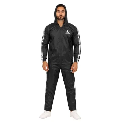 Windproof & Waterproof: Adjustable elastic to provide windproof and waterproof function, and maintains body temperature, suitable for indoor and outdoor use, can be worn in all seasons. North Edge Sauna Sweat suit is made with premium quality 0.18 mm thick PVC coated Nylon fabricExcellent for your gym training and it works so quick to get the result you want. 𝐖𝐚𝐭𝐞𝐫𝐩𝐫𝐨𝐨𝐟 𝐏𝐞𝐫𝐟𝐨𝐫𝐦𝐚𝐧𝐜𝐞: Engineered with waterproof materials, the North Edge long sleeve sweat suit for men effortlessly braves extreme weather conditions, keeping you dry and comfortable during your outdoor training sessions. Equipped with elasticized cuffs, it provides additional protection against wind, earning its reputation as a wind-resistant weight sauna suit. Even during the most physical workouts, personal effects are kept safe thanks to the zipped waterproof kangaroo and trouser pockets Beneficial for gym training and weight reduction process. 2 piece unisex outfit complete with top and bottom (elastic waist and ankles). 𝐂𝐮𝐬𝐭𝐨𝐦𝐞𝐫 𝐒𝐚𝐭𝐢𝐬𝐟𝐚𝐜𝐭𝐢𝐨𝐧: As a trusted and reputable brand in the sports industry, you can trust our sweat suit with hood to help you achieve your training goals. In case of any query related to our NORTH EDGE sauna suit do not hesitate to contact us. North Edge fitness sauna sweatsuit for men Available in S, M , L, XL,2XL ,3XL, sizes Please refer to size chart for more details.