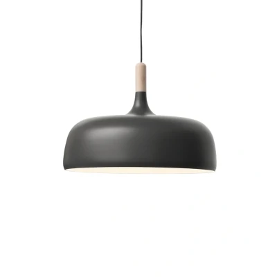 Lights.coAcorn pendant light: harmonious Scandinavian style and spacious illumination Stylish, modern and a highlight in terms of lighting quality, the Acorn pendant light was created by Atle Tveit back in 2012. The timelessly beautiful Acorn has lost none of its fascination since then. The decorative lampshade made of lacquered aluminium provides extensive illumination, for example of a table, thanks to its width. The inside of the lampshade has been painted white for optimal light reflection. A special detail: the suspension features a decorative wooden element that can be replaced to match the look of the rest of the interior. A light beech and a dark walnut wood decor are included.