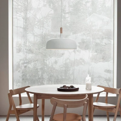 Lights.coAcorn pendant light: harmonious Scandinavian style and spacious illumination Stylish, modern and a highlight in terms of lighting quality, the Acorn pendant light was created by Atle Tveit back in 2012. The timelessly beautiful Acorn has lost none of its fascination since then. The decorative lampshade made of lacquered aluminium provides extensive illumination, for example of a table, thanks to its width. The inside of the lampshade has been painted white for optimal light reflection. A special detail: the suspension features a decorative wooden element that can be replaced to match the look of the rest of the interior. A light beech and a dark walnut wood decor are included.