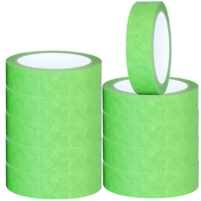 Easy to Use: Green masking tape for painting can prevent paint bleed, leaving no residue. Painters tape has good properties against paint and make a clean line. You can directly tear out the desired length of green tape by hand Using Surface: Decorators tape for painting is suitable for surfaces such as wood, metal, plastic, glass, walls, ceilings, skirting boards Etc. The adhesion of masking tape 24mm is very good. Please test on a small area before extensive use Wide Application: It's perfect for edge protection for hardwood floors, car trim, and windows. Green masking tape is ideal for painting, writing labels, decoration, car spraying, marking, packing Etc Package List: 10 rolls of 24mm painting tape, each roll is 20 meters long. Decorating tape is a great for painting, office, home and industry Warm Tips: Painters masking tape need avoid to direct sun-light and make sure the surface is clean, dry, and no dust. When the paint is dry, Gently lift up the paint tape in 45 degree angle. Please remove soon after painting with masking tape green