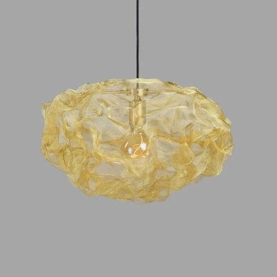 Lights.coSuspension lamp Heat - finely woven metal mesh in lively brass Designer Johanna Forsberg's impressive creation for Northern reflects the Norwegian landscape in a fascinating way. The translucent metal mesh of the Heat pendant lamp looks like a living cloud, interspersed with irregular waves. The warm radiance of the lamp comes from its shimmering colour, which is intensified when the light is switched on and makes the cloud glow impressively. Comparisons to molten metal cannot be denied here. The designer pendant lamp Heat impressively illuminates modern living spaces and lends each individual room a mysterious, lively touch.