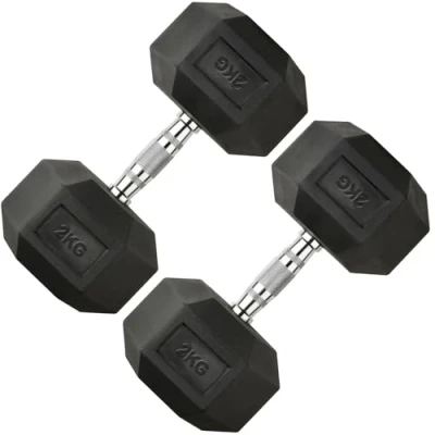 Northern Hex Dumbbell Set Rubber Heavy Weights with Metal Handles Anti Rolling for Weight Lifting Bodybuilding Exercise Workout Strength Training Home Gym 1kg 50kg Pairs Sets (2KG x2 Dumbbells)