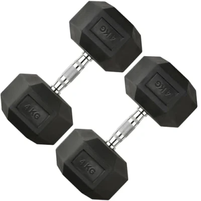Northern Hex Dumbbell Set Rubber Heavy Weights with Metal Handles Anti Rolling for Weight Lifting Bodybuilding Exercise Workout Strength Training Home Gym 1kg 50kg Pairs Sets (4KG x2 Dumbbells)