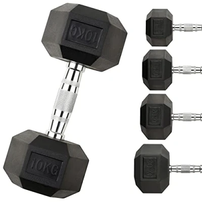 Northern Hex Dumbbell Set Rubber Heavy Weights with Metal Handles Anti Rolling for Weight Lifting Bodybuilding Exercise Workout Strength Training Home Gym 1kg 50kg Pairs Sets (5KG x2 Dumbbells)