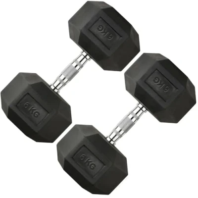 Northern Hex Dumbbell Set Rubber Heavy Weights with Metal Handles Anti Rolling for Weight Lifting Bodybuilding Exercise Workout Strength Training Home Gym 1kg 50kg Pairs Sets (6KG x2 Dumbbells)