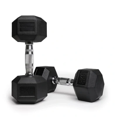 🏋 Built-in welded metal handle and thick hexagonal rubber, these dumbbell are constructed to have strong solid cast design for durability, hexagonal shape to prevent them from rolling and shaking. This also cuts down the noise and damage to the floor while handling them. 💪 Ideal for starters and heavy-duty weightlifters and body builders. Free weights are essential to staying healthy and a great addition to your home gym no matter what level of training you are at. Also, can be used outdoors, gyms, studios, fitness classes/clubs 🙌 The anti-roll hex rubber-coated cast iron dumbbells range in weight from 1kg to 10kg. They are available to purchase as pairs to make the set. 💯 Versatile when it comes to the number of exercises such as shoulder press, chest press, bicep and tricep workout, squats, ab core training plus so much more! Add the Northern Hex Dumbbells to your exercise routine and experience the convenience, comfort, and durability they offer. Elevate your workouts and achieve your fitness goals with these high-quality dumbbells. Start your fitness journey and enjoy the benefits of a well-rounded workout. Range available between 1kg and 10kg Sold in pairs