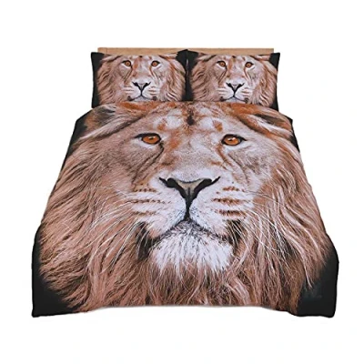 Northern Luxe NORTHERNLUXE 3D Duvet Cover Set Animal Effect for Children's and Adults Printed Quilt Bedding with Pillow Cases (Lion, Single)