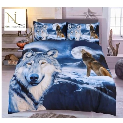 Northern Luxe NORTHERNLUXE 3D Duvet Cover Set Animal Effect for Children's and Adults Printed Quilt Bedding with Pillow Cases (Wolf, King)