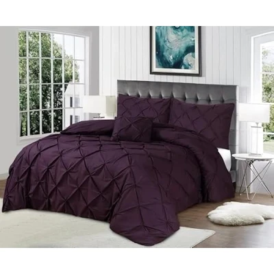 Northern Luxe Pintuck Duvet Cover with Pillowcases Pinch Pleated Soft Bedding Set, Quilt for Ultimate Comfort Top Notch Quality (Purple, Double + Fitted Sheet)