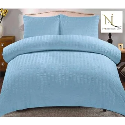 Luxury seersucker duvet cover with cushion case poly cotton bedding set give your room a new look and giving it a romantic and relaxed appearance. Material the duvets design quilt cover set is crafted from cotton blend fabric that is Durable, soft & breathable super comfort bed sets. Set Includes: Single - 1 x Duvet Cover & 1 x Pillowcase | Double - 1 x Duvet Cover & 2 x Pillowcase |King - 1 x Duvet Cover & 2 x Pillowcase | Super King - 1 x Duvet Cover & 2 x pillowcases Colour: White, Ideal to add a touch of modern trendy style to your bedroom & Hotel Collection Care: Easy care - Machine washable at 40° C, tumble dry friendly.