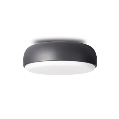 Lamp MastersOver Me in 40 is a simple ceiling/wall lamp consisting of a smooth metal frame and an illuminated glass disc. The lamp provides a beautifully diffuse light and thanks to its minimalist look and flexibility, Over Me is a natural supplement to modern interior design. Over Me comes in two sizes and is available in dusty blue, dark grey and off-white. Over Me is well-suited for practically any room and certified for use in damp spaces (IP44). Over Me’s slim profile makes it an excellent choice for areas that aren’t suitable for conventional light fixtures.