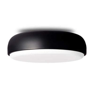 Over Me Ceiling Lamp 50 Matt Black is a simple ceiling/wall lamp consisting of a smooth metal frame and an illuminated glass disc. The lamp provides a beautifully diffuse light and thanks to its minimalist look and flexibility, Over Me is a natural supplement to modern interior design.