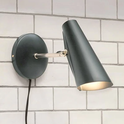 Lights.coPractical Birdy wall lamp with supply line and plugNext to the bed or the reading chair, the Birdy wall lamp proves to be a practical lighting object. The shade is connected to the arm and the wall mount by means of a joint and can be individually aligned. In addition, the wall lamp has a 200 cm long supply line with plug and intermediate cord switch. The design, which originates from the 1950s, was developed by the Norwegian designer Birger Dahl (1916-1998). Dahl's designs stand for clear forms that do not hide behind decorative flourishes. The cone-shaped shade of the Birdy wall lamp and its puristic appearance also stand for Dahl's typical style.