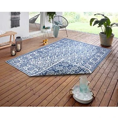 NORTHRUGS Curacao and Rug 80 x 150 cm Reversible Weatherproof Modern Graphic Pattern for Balcony Patio Garden Conservatory Kitchen Living Room Waterproof in Ocean, 105431 80x150