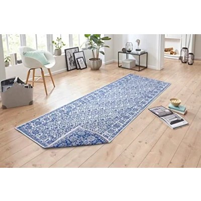 NORTHRUGS Curacao Indoor and Outdoor Rug 80 x 350 cm Reversible Weatherproof Modern Graphic Pattern for Balcony Patio Garden Conservatory Kitchen Living Room Waterproof in Ocean