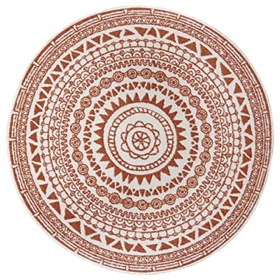 NORTHRUGS Indoor and Outdoor Rug Coron Round Diameter 140 cm Reversible Weatherproof Modern Graphic Design Runner for Balcony Patio Garden Conservatory Living Room Waterproof in Cayenne
