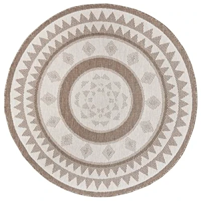 NORTHRUGS Indoor and Outdoor Rug Jamaica Round Diameter 140 cm Reversible Weatherproof Modern Graphic Design Runner for Balcony Patio Garden Conservatory Living Room Waterproof in Linen