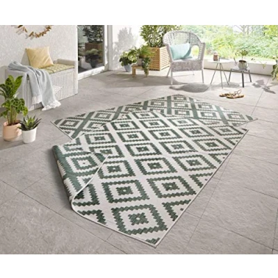 NORTHRUGS Indoor and Outdoor Rug Malta 120 x 170 cm Reversible Weatherproof Modern Geometric Pattern for Balcony Patio Garden Conservatory Kitchen Living Room Waterproof in Green Cream