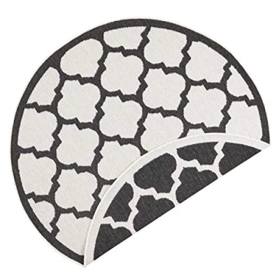 NORTHRUGS Indoor and Outdoor Rug Palermo Round Diameter 140 cm Weatherproof Modern Graphic Design Runner for Balcony Patio Garden Conservatory Living Room Waterproof in Black Cream