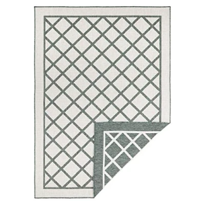 NORTHRUGS Indoor and Outdoor Rug Sydney 120 x 170 cm Reversible Weatherproof Modern Geometric Pattern Runner for Balcony Patio Garden Conservatory Living Room Waterproof in Green Cream