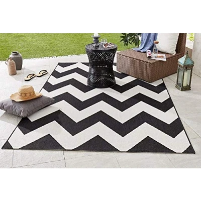 NORTHRUGS Indoor and Outdoor Rug Unique 120 x 170 cm Weatherproof Modern Design Zig Zag Geometric Pattern Runner for Balcony Patio Garden Conservatory Living Room Waterproof in Black
