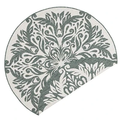 NORTHRUGS Madrid Indoor and Outdoor Rug Round Diameter 140 cm Reversible Weatherproof Modern Graphic Design Runner for Balcony Patio Garden Conservatory Living Room Waterproof in Green Cream