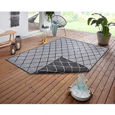 NORTHRUGS Malaga Indoor and Outdoor Rug 120 x 170 cm Reversible Weatherproof Modern Geometric Pattern for Balcony Patio Garden Conservatory Kitchen Living Room Waterproof in Night Silver