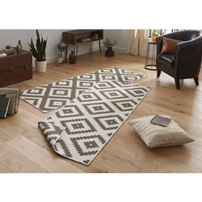 NORTHRUGS Outdoor Rug, Malta Reversible Rug Weatherproof, Modern Geometric Pattern Runner for Balcony, Patio, Garden, Conservatory, Living Room Waterproof, Polypropylene, Brown, 80 x 350 cm