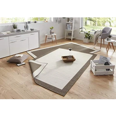 NORTHRUGS Panama Indoor and Outdoor Rug 120 x 170 cm Reversible Weatherproof Modern Plain Design with Border Runner for Balcony Patio Garden Conservatory Living Room Waterproof in Brown Cream