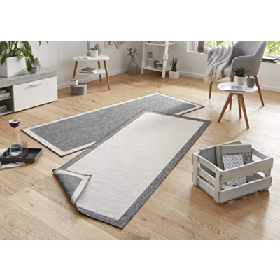 NORTHRUGS Panama Indoor and Outdoor Rug 80 x 350 cm Reversible Weatherproof Modern Plain Design with Border Runner for Balcony Patio Garden Conservatory Living Room Waterproof in Grey Cream