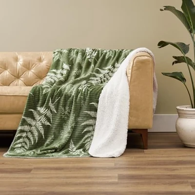 Northwest Ashford Home Cozy Silk Touch Ribbed Throw Blanket, Lynwood Botanical 60 x 80 inches
