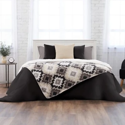 Northwest Ashford Home Cozy Silk Touch Ribbed Throw Blanket with Sherpa, Nadira Ikat 50 x 60 inches