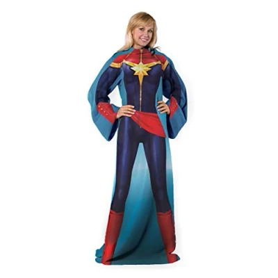 Northwest Comfy Throw Blanket with Sleeves, Adult (48 x 71 in), Mighty Captain Marvel