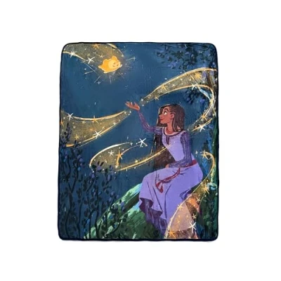 EVERY FAN'S DREAM COME TRUE: Add a touch of excitement and style to your home décor with a decorative silk touch sherpa throw blanket from Disney's movie Wish. Perfect for cozying up on your couch or bed. its magical design features Asha wishing upon the star on a magical star filled evening background. SOFT & COZY BLANKET: Oversized, silk touch fabric front, with decorative binding around all edges. Made from high quality 100% polyester that feels luxurious against your skin and keeps you warm and comfortable so you can relax and unwind after a long day. STYLISH DESIGN: Ample 60" by 80" rectangular design big enough to spruce up any living space with a splash of bold vibrant color. Designed and manufactured in the USA with premium quality materials and construction to make it a comfortable addition to your home for years to come. COMFORT & CARE: Machine wash cold separately using delicate cycle and mild detergent. Do not bleach. Machine dry separately on gentle cycle. Remove promptly. Do not iron. Easy to maintain and keep looking fresh and new no matter how many times you use it. OFFICIALLY LICENSED: All our products are officially licensed, so true fans can trust in their quality & authenticity. The perfect addition to any fan's collection — bring your favorite characters into your home and daily life!