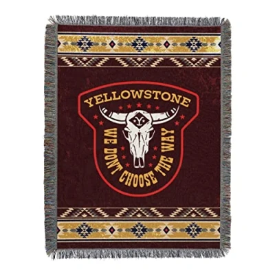 Features 'We don't choose the way' on a maroon tribal background Detailed, woven throw blanket; decorative fringes around all edges; made in America Measures 48"W x 60"L Machine wash cold separately using delicate cycle and mild detergent. Do not bleach. Machine dry separately on gentle cycle. Remove promptly. Do not iron. MADE IN THE USA; Made of 100% Polyester