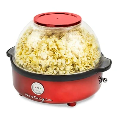 6.8 litre volume: per serving you can burst up to 170 grams of popcorn so you can enjoy it. That's a lot of healthy popcorn that you can enjoy and share with your friends, family or anyone else who loves popcorn. Quick heat technology: bursts 30% faster than conventional popcorn poppers with stirring function. No preheating required. Your snack is ready for you in no time. Fun and easy: simply add oil and grains, turn it on and stop the popcorn begins to burst. When the bang stops, turn the bowl over, add your preferred seasons and enjoy your snack. Cool touch handles make turning around a breeze. Serving bowl: turn the popper over to use the bowl as a serving bowl. Ventilation holes in the bowl allow moisture to escape and ensure hot, fresh and crispy popcorn. Also ideal for melting butter. Bowl includes snap on lid. MEASURING CUP - Includes a 1/4 cup measuring cup for kernels and a 1 tablespoon measuring spoon for oil., Weight: 6.5918216338 pounds, Manufacturer: Nostalgia