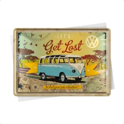 Nostalgic Art 10223 Volkswagen VW Bulli/Let's Get Lost, Blechpostkarte, 10 x 14 CM