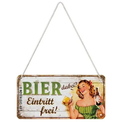 Nostalgic Art Free Entry Gift idea for Beer Fans, Made of metal, Vintage Design with Saying, 10 x 20 cm