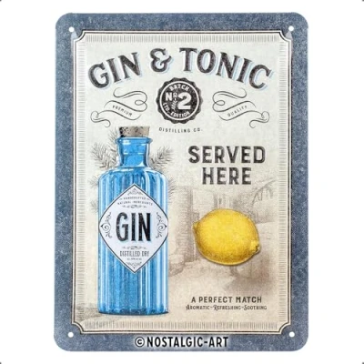 Nostalgic Art Gin & Tonic Served Here Retro Tin Sign Gift Idea for Beer Fans Metal Vintage Design Decoration 15 x 20 cm