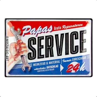 Nostalgic Art Papas Service Gift Idea for Dad, Made of metal, Vintage Design with Saying, 20 x 30 cm
