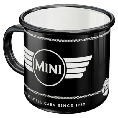 Nostalgic-Art Retro Enamel Mug 360ml Mini - Logo Black - Gift Idea for Mini Cooper Accessories Fans Camping Mug Vintage Design