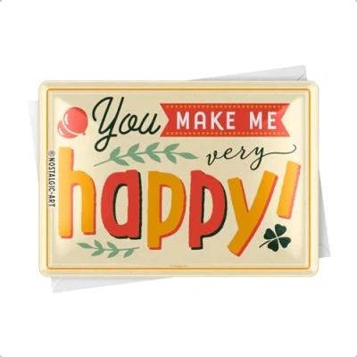 Nostalgic Art, Retro Greeting Card You Make Me Happy Nostalgia Gift Idea Tin Postcard Mini Sign Vintage Design 10x14cm