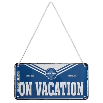 Nostalgic Art Retro Hanging Sign Pan Am On Vacation Gift Idea for Travelers, Metal Plaque, Multicoloured, 10 x 20 cm